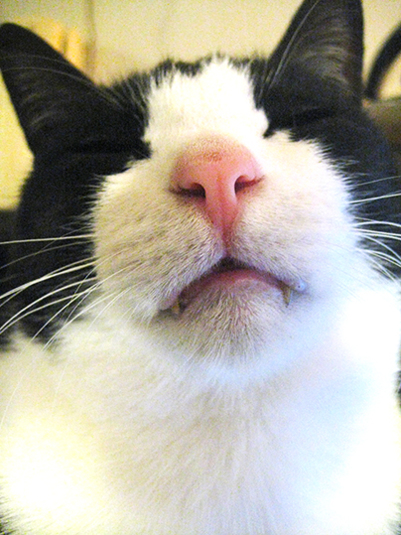 (ちなみにほかの2猫たちは、よく見ないと牙は見えない)