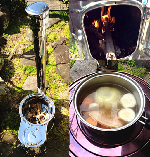 ストーブ的な、煙突的な、庭に落ちてる枯れ草を燃料に出来るからお金がかからず便利と。