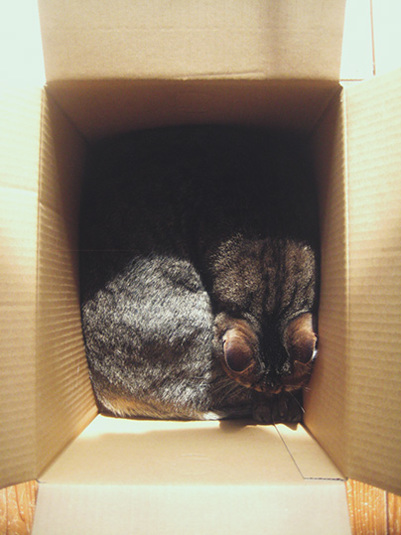 やはり、ネコは液体か。。(じゃっかん、箱膨らんどるが。。)