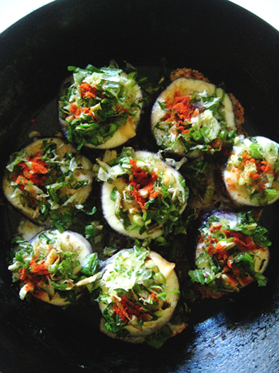 ナスのチーズ焼き。赤いのはパプリカパウダー。