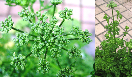 ブロッコリー状のモノが出てきたwパセリ。蕾のようなので花が咲く予定。