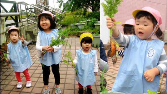 そして、恒例の、野菜を穫ってみよう!今日はスイートキャロット。