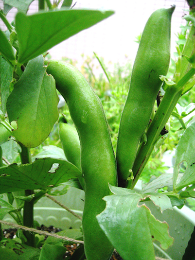 新入り枝豆の葉っぱは、水気をはじく気満々で元気である。