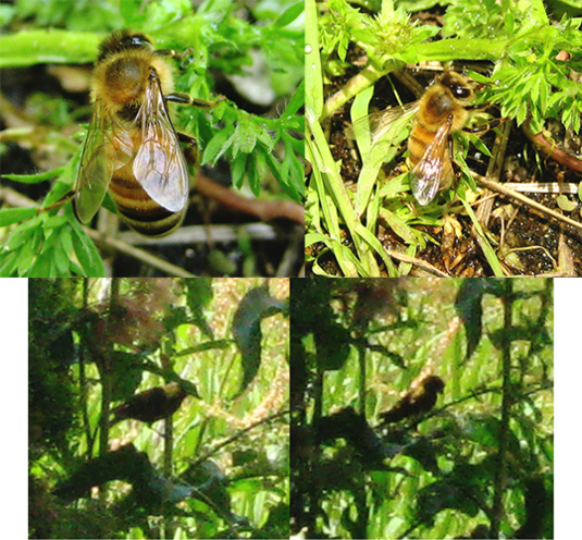 今日はミツバチたちもたくさん来てた。ズッキーニとカボチャが花咲いたらお願いしますねえ。