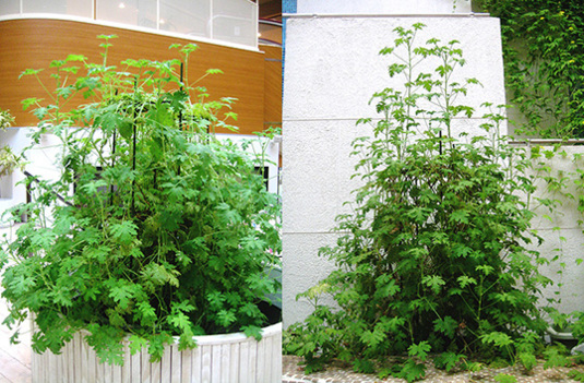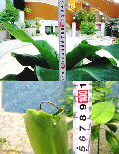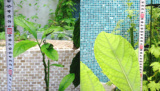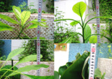 室内のゼラニウム、またゴーヤの実、モンキーバナナの伸長検査。