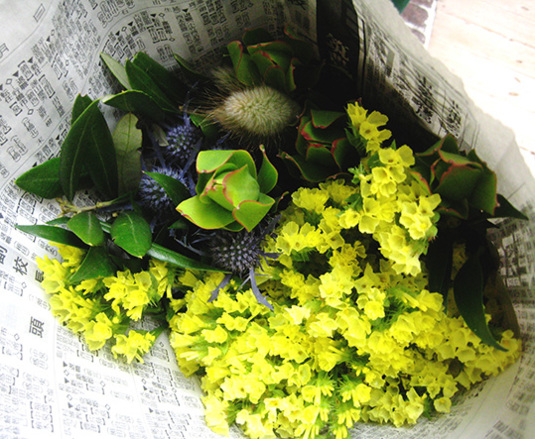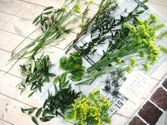 参加者の皆さん一人一人へ、花材:今回のハルノアシオトが用意されてたワケですが、