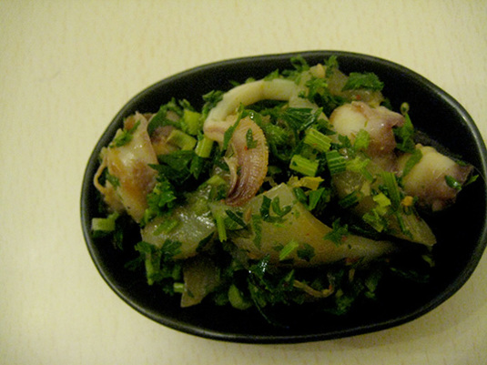 「イ」カ。の刺身。少し半透明。でも、まあ、白い。