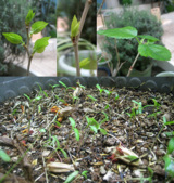 その土留め色の実から芽が出て、苗がポツポツ育って