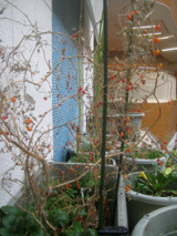 そんな隣で枯れッ枯れの茎だがw鈴生りデスわマイクロトマト。
