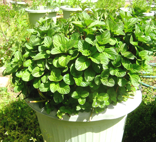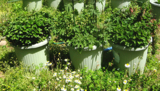 ホップもナゼかしら丸いフォルム?(3鉢並びの写真中央がホップです。両サイドがミント)