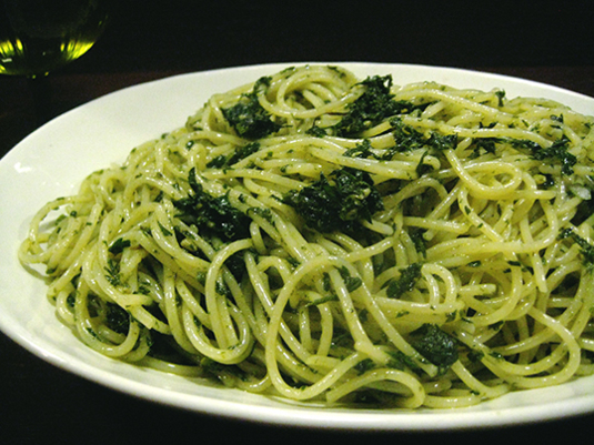 洒落たふうに言っとるだけで、緑の葉のニンニク松の実入りオイルソースですw