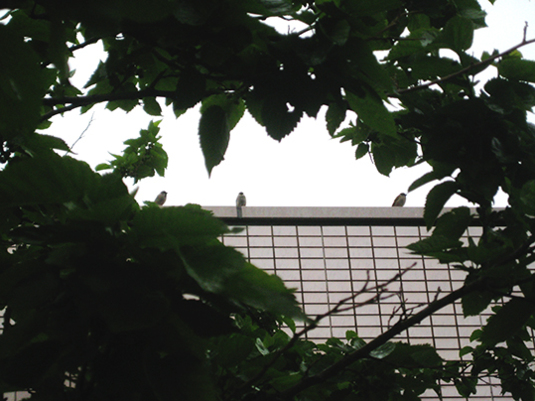 相変わらず、もう天空を居住地としているのかも知れない、ムクドリのペア。
