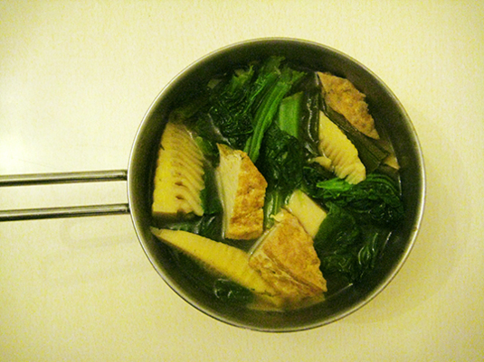 上記の、ネギと筍と厚揚げの煮たん。