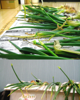 ネギの部分が倒れた頃、ネギの部分は繊維質が多くなってあまり美味しくないそうだ。