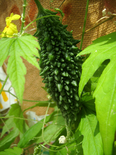 ゴーヤの実、豊作。陽の入る角度が変わって、