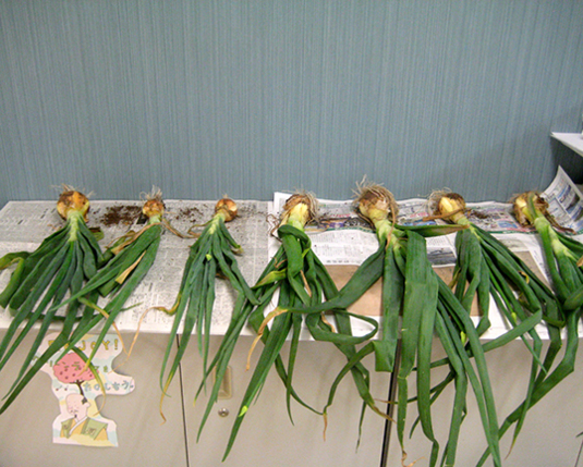 玉ねぎがなかなか取れなくて、みんなで力を合わせて。