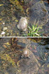 う、動かない。。川にインしないのかい?アカミミガメは、淡水だよな????