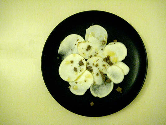 薄くスライスして、適当に皿に盛り、