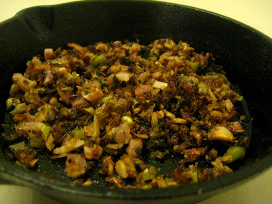 ソレを適当に細かく刻んで、すべてをオリーブオイルで炒める。
