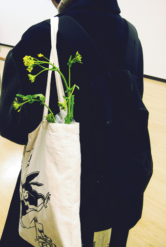 オシャレに、アーティストバッグに入れて。帰宅前をパチリ。