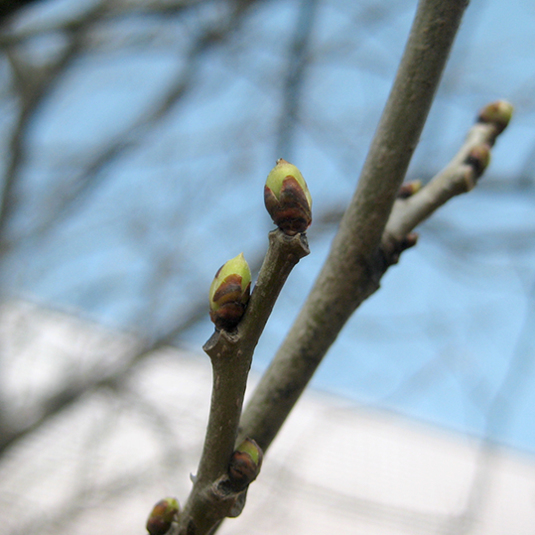 桑の木の葉の芽が出てきた。