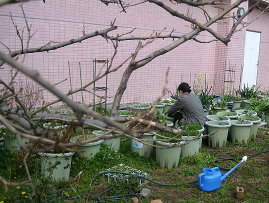 そして、土寄せのあと、s女史が何やら座りこみ、ごにょごにょ。