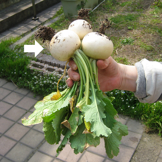 隣り合ってる小さい蕪たちの生長を助けるためにも、、、と話してる途中で