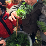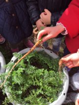 どれだけ育ったかな?間引きついでに、みんなで抜いてみました。