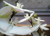 胡蝶蘭を上から見ると、たくさんの白いパリピがおりましてw