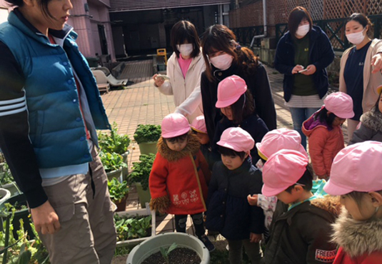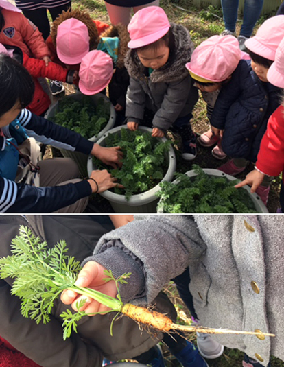 UP↑UP↑のファーム通信放送前に、みんなで野菜の観察をしました。