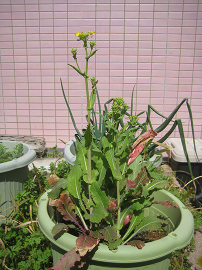 薹が立ち始めたサラダ蕪:もものすけ。