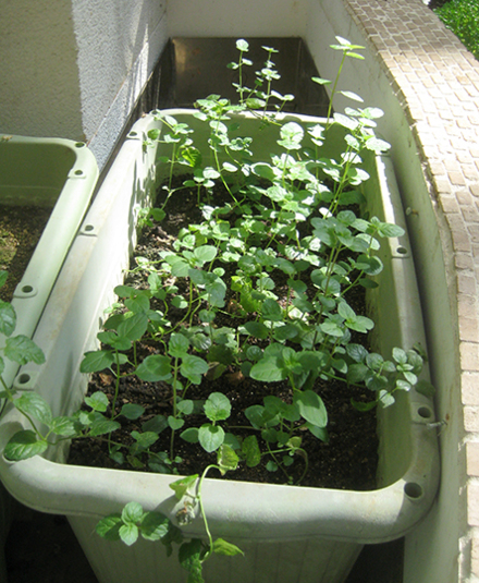 どの鉢のミントも、挿し木挿し水で増殖させたミントも、