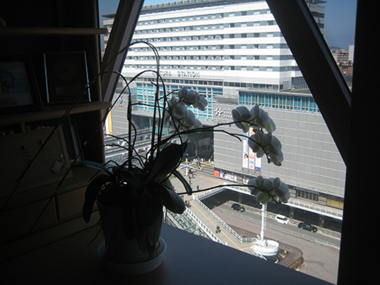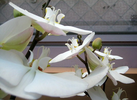店頭のお祝い胡蝶蘭を見かけました。