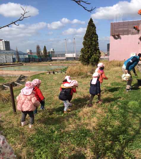 「土を踏む感触が気持ちイイ!」と、はしゃぎ、