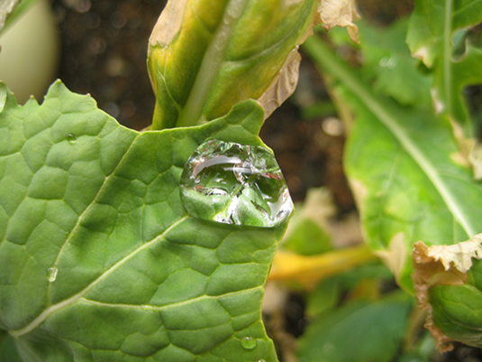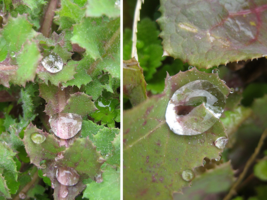 スタジオ前のハーブたちは、同じ量の水を注いでも、