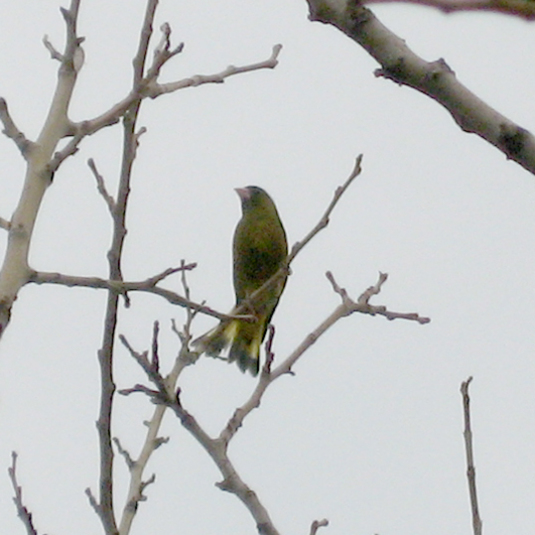 真後ろで桑の木にカワラヒワのペアが来ていて、コッチもいますよと鳴いていただき、