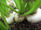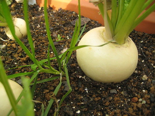 育っている蕪も一緒に抜けそうになって、断念。