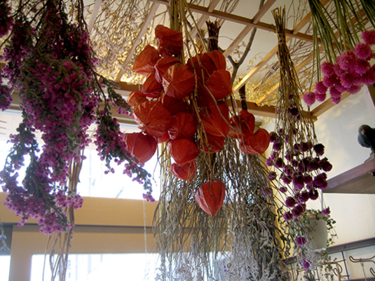 天井からつるしているだけで画になる植物たち。