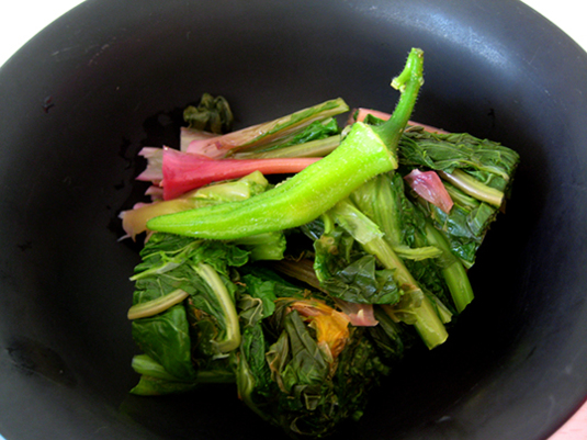 まず生で食べて、野菜本来の味をいただく。で、加熱したのみの野菜の味をいただく。
