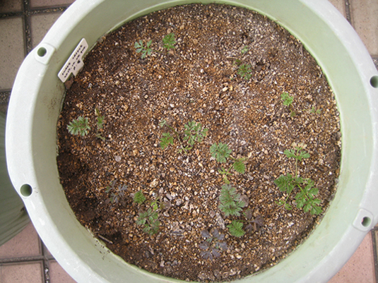 鉢の中は霜柱のチョイレベル高めみたいな。凍上って現象でしょうか。