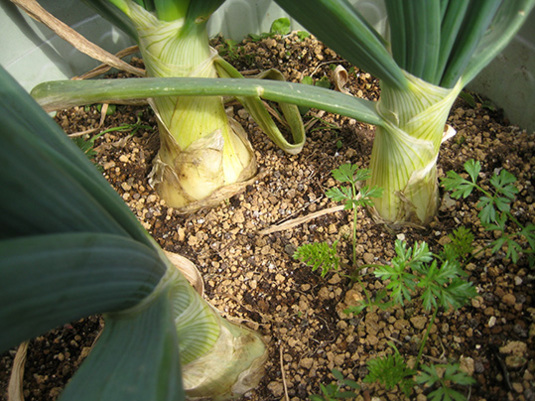 土を盛り上げて、小さい野菜たちが押し上げられてて
