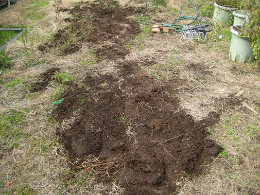 戯れもそこそこに、最近たまってた土の盛りを、シャベル?ショベル?で、