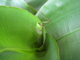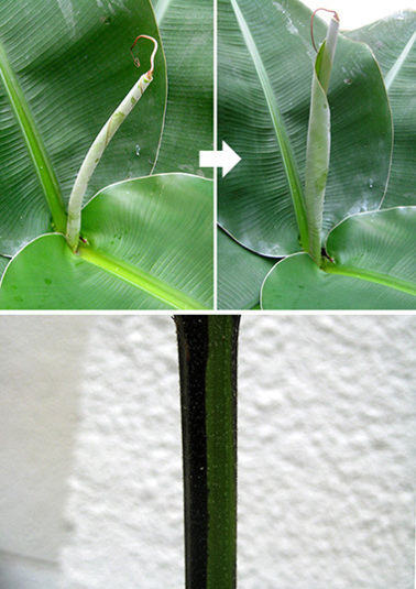 モンキーバナナ、少しずつ、葉をグルグルしながら出してきては、