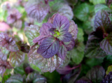 ミントは、冬仕様赤紫色葉の中央から、緑の葉を出し始めました。