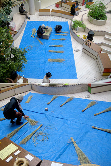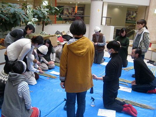 参加者の皆さんの藁を、必要な分だけ数えては束ね数えては束ね、、、
