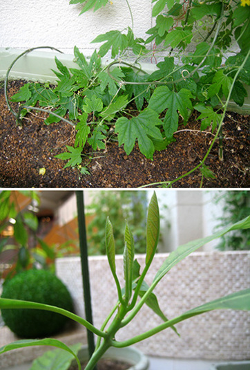 ピーンと伸びて葉を広げ、