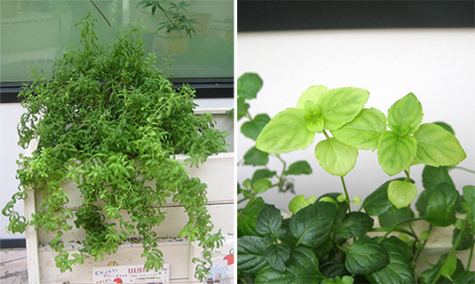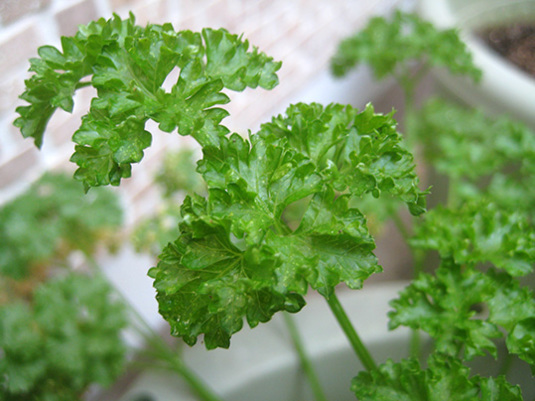 室内のパセリは、葉が広がり気味。