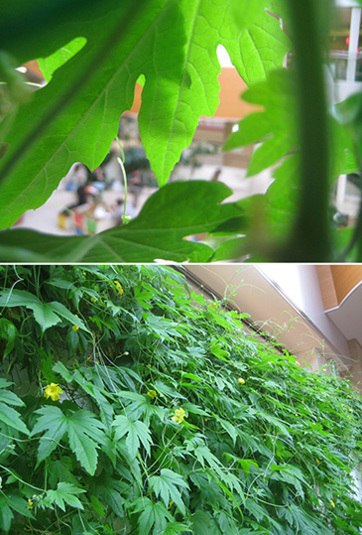 腕白気分全開でw、ゴーヤの群の裏側へ。