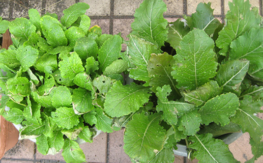 ゆきちゃんのほうは、背の低い鉢でイイ感じの間隔で育っているので、食べやすいのでしょうね。