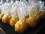 (中に、ベビーチーズを切ったものが入っています。ラップでなんとなく栗の形に)